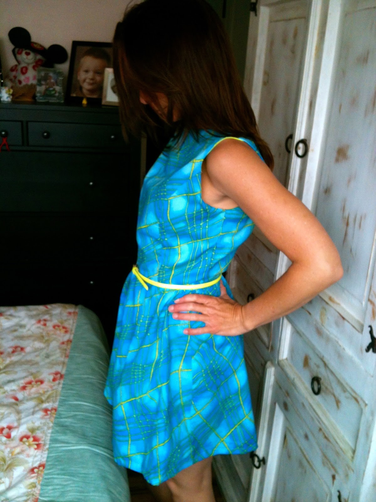 I liked it, but it felt a little long and frumpy on the bottom. I decided to take the skirt in a bit on the sides, so it would be more form fitting and a-line. I also took it up a little higher to knee length, so I could walk once I took it in. I didn't want to deal with making a vent in the back, if necessary.